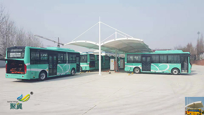 大巴停车棚耐热性、耐久性、自洁防污性、防火性能强(防火B1级)。