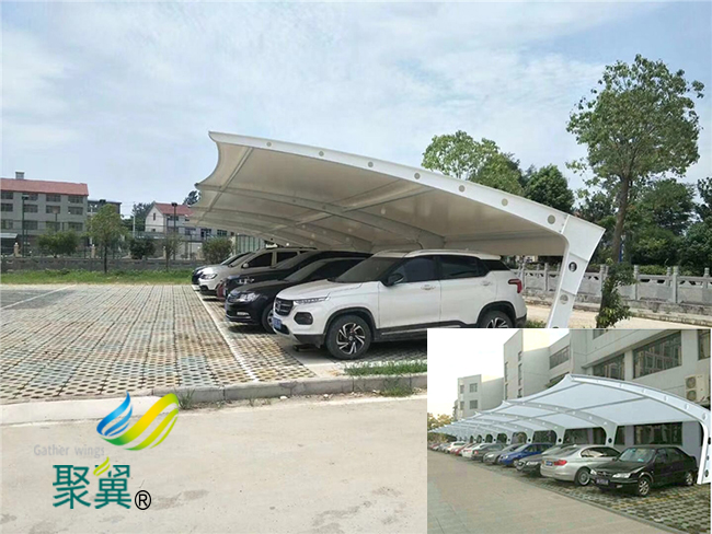膜结构车棚与传统的停车棚相比,外观更加美观,膜结构停车棚受欢迎的原因不仅是新的停车棚源于中国汽车的激荡,而且膜结构车棚材料的艺术感也使其能够取代传统停车棚的地位。膜结构车棚依靠形状和颜色,结合当地的热情,自然条件和环境,创造出传统无法实现的曲线和形状。