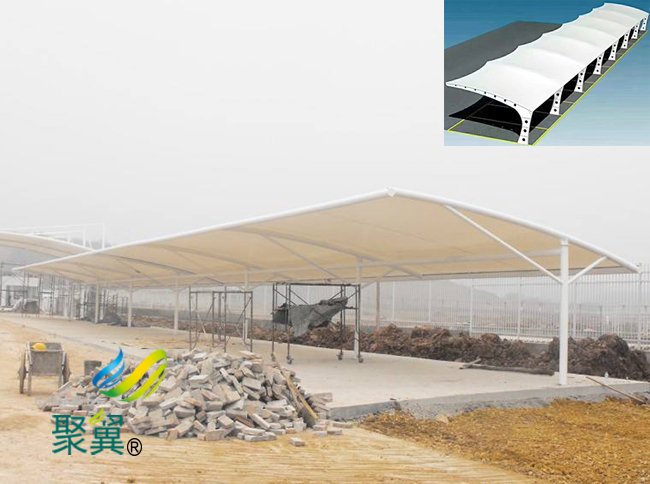 反向张力膜结构车棚:反向曲折形状膜结构车棚,或者是具有张力而且安稳的双曲折鞍形形状。膜结构车棚张力和安稳性来自于膜平面及其线性鸿沟的机械预应力。