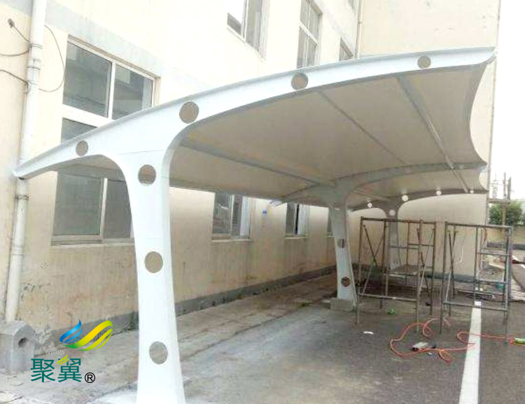 膜结构遮阳雨棚车棚体轻:由于车棚工程采用的材料和结构确定了车棚工程是一种轻型结构,与其他传统的建筑结构形式相比车棚工程**轻。