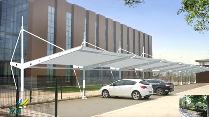膜结构车棚一改传统建筑材料而使用膜材,其重量只是传统建筑的三分之一,而且膜结构车棚可以从根本上克服传统大跨度建筑上所遇到的困难,可创造巨大的无遮挡的可视空间。膜结构车棚特点是强度高、耐久性好、防火难燃、透光性好、自洁性好,跨度可以超过两百米,不受紫外线影响,使用寿命长,一般15-30年。