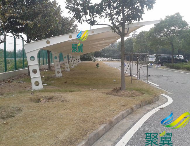 详细>>江苏南通膜结构车棚于2013年10月16日顺利完工,通盛南路膜结构车棚竣工验收客户满意度100%满意!...