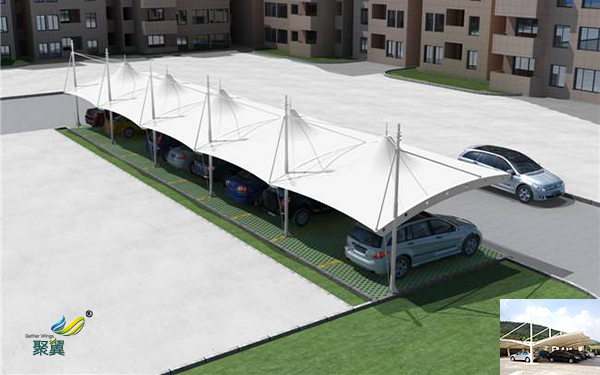 详细>>安徽膜结构定制停车棚的常用膜材安装视频报价