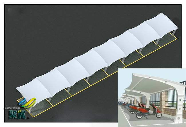 我们还有统一个小技巧来增加膜结构车棚的牢固度,因为膜结构车棚成型的原因是根据膜材料的张力来是棚顶铺张开来,这样我们可以把棚顶用不锈钢管连接起来,这样能有效的抵御风雨的侵袭。
