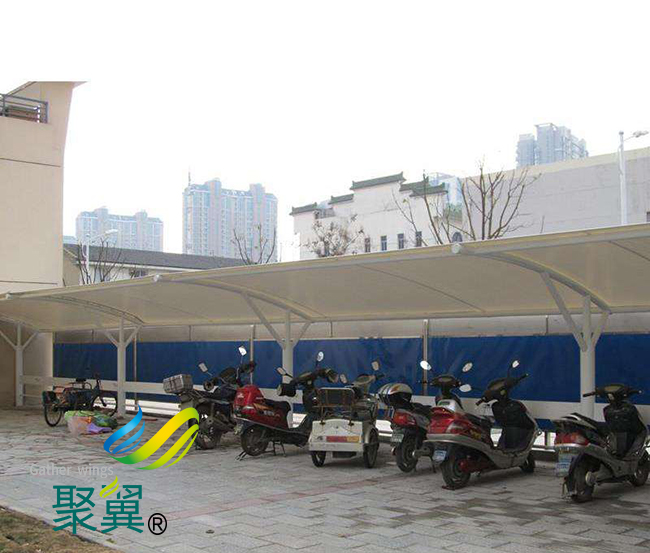 多款电动车、摩托车、自行车都适合安装。让普通电动车享受“轿车”的时尚,膜结构车棚成为了靓丽城市风景。膜结构车棚遮阳雨篷设计独特,新颖别致,一篷多用!膜结构车棚防雨、遮阳、挡风、挡风沙。