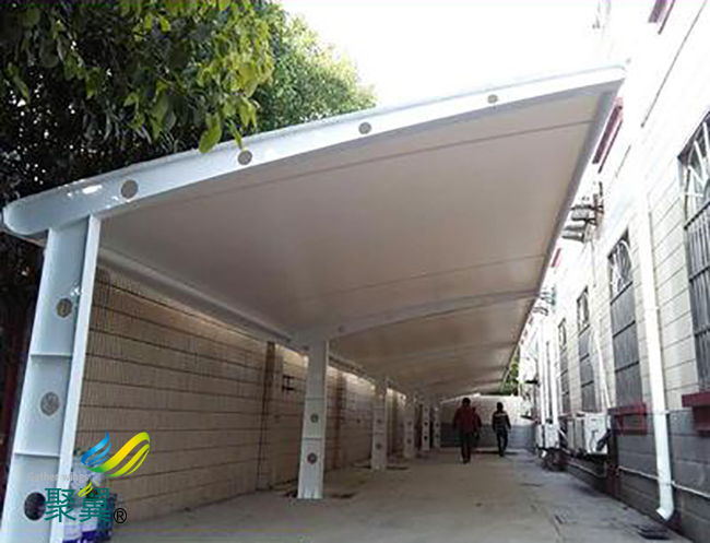 膜结构车棚跨度空间大指出其因为自重轻,膜结构车棚修建能够不需要内部支撑面大跨度掩盖空间,这使大家能够列灵活计和运用修建空间,描绘出愈加有构思的修建。