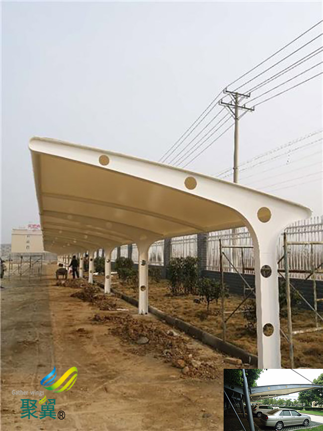 膜结构车棚钢结构表面;