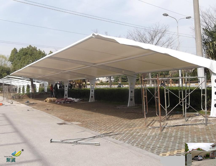膜而发生撕裂时,若结构布置能保证桅杆、梁等刚性支承构件不发生坍塌.其伤害性会更小。膜结构自行车棚厂家膜结构厂家的柔性使其在于一荷载作用下均以有利的形态承载当然,结构的布置和外形要根据荷载情况来进行设计和调整设计师要确保膜面与其辅助结构协停车棚厂家功能:的白身特征,其可以知足从简单遮阳结构到功能复杂的大塑建筑等很多不同的建筑功能要求,并且对于有些功能要求只有它才是为适合的。