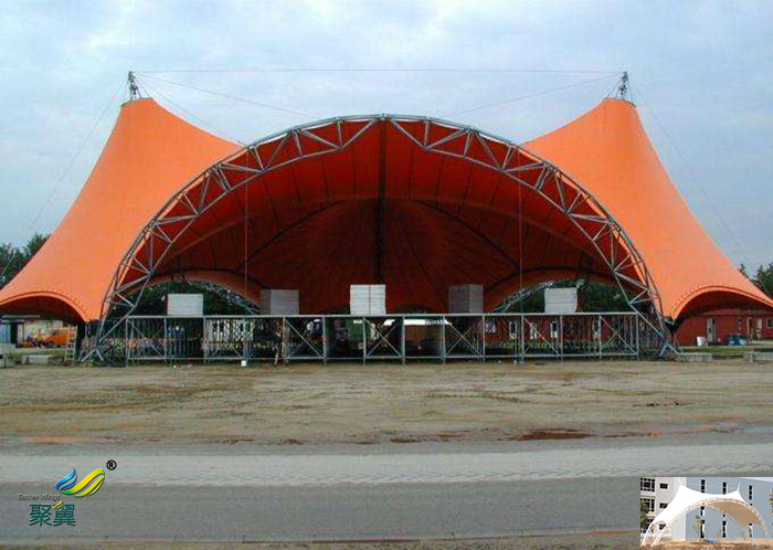 2.舞台膜结构具有特定功用的修建都可经过立意得以表达,舞台膜结构的共同外形表现了修建自身的天然美感。
