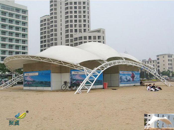 2.社区舞台膜结构具有特定功用的修建都可经过立意得以表达,舞台膜结构的共同外形表现了修建自身的天然美感。