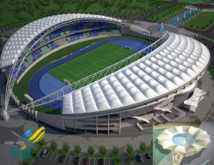 充气膜建筑是用特殊的建筑膜材做外壳,配备一套智能化的机电设备在气膜建筑内部提供空气的正压把气膜建筑主体支撑起来的一种建筑结构系统。