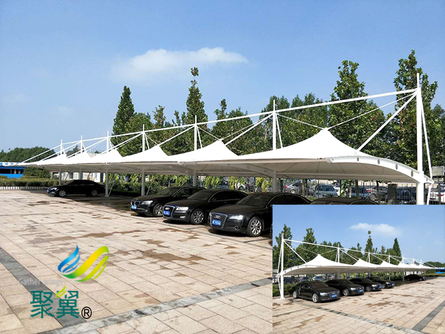 停车棚钢膜结构汽车棚优点有:不仅结实耐用,更美观大方,富有个性。