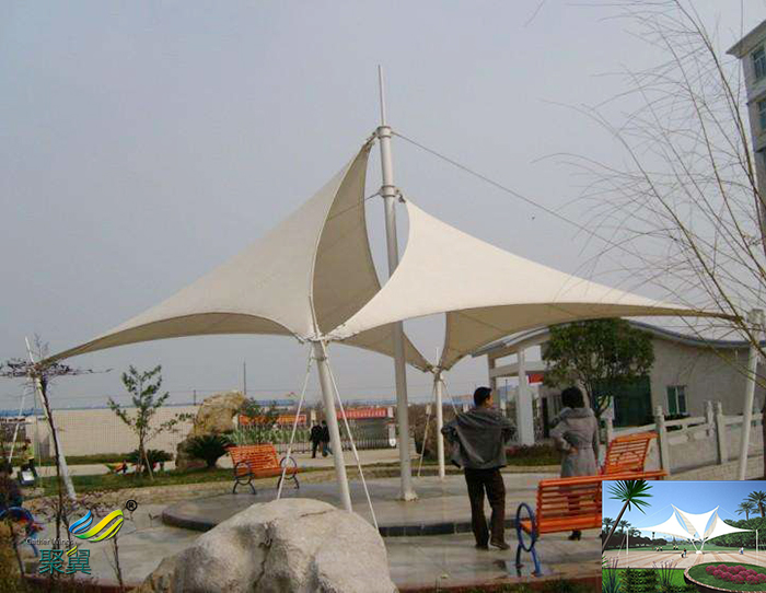 4、景观膜结构膜材料表面加涂的防护涂层,具有耐温的特点,而且本身不发粘,这样落到膜材料表面的灰尘可以靠雨水的自然冲洗而达到自洁的效果。