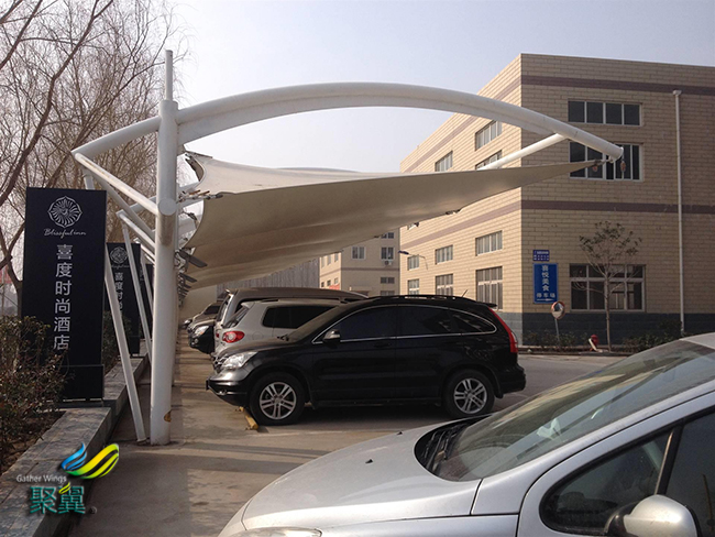 2.膜结构车棚的主要特点:自重轻、跨度大;建筑造型自由丰富;施工方便;具有良好的经济性和较高的安全性;透光性和自结性好;耐久性比较好。
