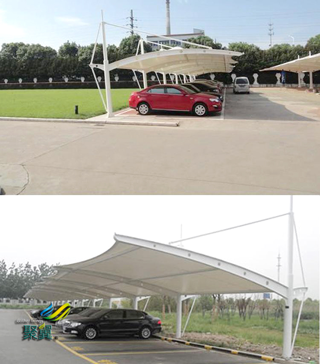 独特的外表越来越多地镶嵌在现代建筑中,因此,膜结构车棚也被称为第四代建筑。膜结构车棚是一种新生的事物,膜结构车棚业在摸索中发展,不断兴起的膜结构车棚公司有些在不断壮大。