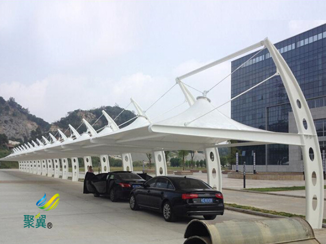 膜结构车棚一改传统建筑材料而使用膜材,膜结构车棚重量只是传统建筑的三分之一。而且膜结构可以从根本上克服传统膜结构车棚的大跨度(无支持)建筑上所遇到的困难,可创造巨大的无遮挡的可视空间。 膜结构车棚是一种新生的事物,我国膜结构车棚业在摸索中发展,不断兴起的膜结构车棚公司有些在不断壮大。 膜结构车棚膜材料本身具有良好的透光率(10%-20%)建筑空间白天可以得到自然的漫散射日光,可以节约大量用于照明的能源。